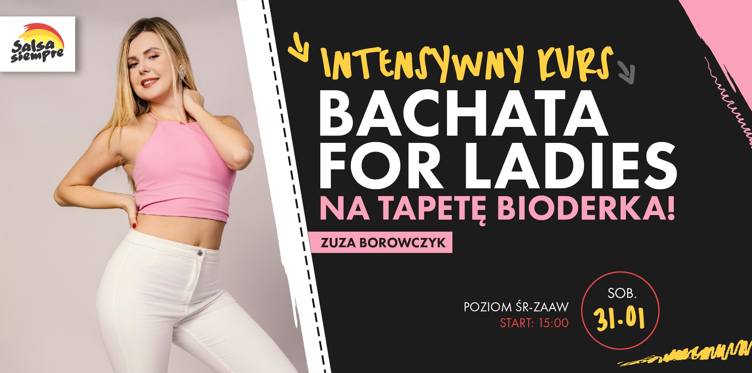 Aktywność, mnóstwo endorfin, cudowna muzyka, ludzie i wyjątkowa atmosfera!INTENSYWNY KURS! BACHATA FOR LADIES BIODERKA